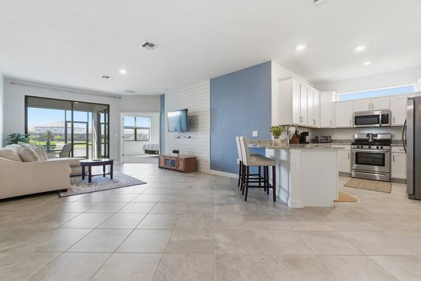 Enjoy BEAUTIFUL WATER VIEWS FROM EVERY WINDOW in this stunning twin villa, ideally located on a peaceful CUL-DE-SAC in the highly sought-after LORRAINE LAKES community. Designed for both comfort and style, this 2-bedroom, 2-bath home with a DEN/BONUS ROOM showcases an exceptional blend of open-concept living, modern finishes, and serene lakefront scenery. Step through the welcoming foyer—complete with a stylish SHIPLAP ACCENT WALL—into the bright and spacious GREAT ROOM, where high ceilings and natural light set the stage for effortless Florida living. The open layout flows seamlessly through the DINING AND LIVING AREAS, also highlighted by a shiplap feature wall, and out to a SCREENED LANAI overlooking the tranquil lake. The CHEF-INSPIRED KITCHEN features granite countertops, a breakfast bar, stainless steel appliances, a pantry, and an under-mount sink. A charming TRANSOM WINDOW ABOVE THE CABINETS adds both warmth and light to the space. A VERSITLE DEN, enclosed with glass French doors, offers the perfect flex space—ideal for a home office, media room, or POTENTIAL 3RD BEDROOM. The PRIMARY SUITE is a private retreat, complete with French doors, direct lanai access, serene lake views, a large walk-in closet, and an ensuite bath featuring dual vanities and a spacious walk-in shower. The 2nd bedroom is perfectly positioned near the main bath, which includes a full tub for added comfort. Additional highlights include a DEDICATED LAUNDRY ROOM, TWO-CAR GARAGE with rough-in for drop-down attic access, ON DEMAND HOT WATER HEATER, and HURRICANE SHUTTERS for peace of mind. At Lorraine Lakes, you’ll enjoy RESORT-STYLE LIVING every day with access to exceptional amenities: three sparkling pools, a splash park, playground, clubhouse with restaurant, tennis and pickleball courts, basketball, a state-of-the-art fitness center, and an active social calendar. The HOA FEE COVERS LANDSCAPING, CABLE, AND SECURITY, making maintenance a breeze. With its ideal location, BREATHTAKING LAKE VIEWS, and unmatched community amenities, this villa perfectly captures the Florida lifestyle—easy, elegant, and endlessly inviting.