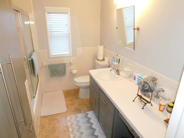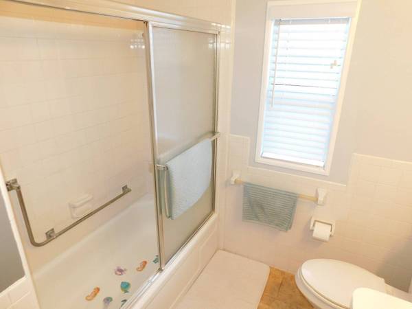 BATHROOMS: Master bath has combination tub/shower, single vanity, medicine cabinet, and tall linen cabinet; guest bath has combination tub/shower, single vanity, medicine cabinet, and tall linen cabinet