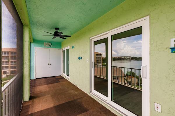 BRING ALL OFFERS! MOTIVATED SELLER! $10,000 PRICE IMPROVEMENT! Seller will provide a 13 mos. CHOICE ULTIMATE Home Warranty for your peace of mind! With a panoramic view of the 19-acre Lake Bayshore, this updated 2b/2b, split bedroom plan in a 55+ community, is a must-see and priced to sell! It boasts major updates like impact resistant sliders and windows, a newer A/C installed in 2021, and luxury vinyl plank throughout. The light, bright kitchen has recently installed quartz countertops, stainless steel deep sinks and faucet, with updated ceiling and white appliances. The passthrough to the dining room is adorned with a quartz breakfast bar. The spacious dining room/living room combo is flanked by a custom slider leading you to the huge screened balcony from where you can feast your eyes on the morning sunrise over Lake Bayshore. You will also enjoy the lake view from the primary bedroom, which not only has a large walk-in closet but also an ensuite bath and private office nook. Another custom slider provides easy access from the primary bedroom to the private laundry closet on the balcony which houses a newer Samsung washer and dryer and something that is a rarity in most condos – a utility sink!!! Both baths have updated vanities and toilets. Modern fans have been installed in the kitchen, living room, both bedrooms and screened balcony. Enjoy a day of fishing from the pier or kayaking on the lake. Talk about LOCATION, LOCATION, LOCATION … in addition to this spectacular view, the unit is located just two doors from the elevator with an assigned parking spot in near the front of the building (see photo) and close to the pool & clubhouse. Bayshore on the Lake is a friendly, amenity rich, active 55+ community in the heart of Bradenton, close to shopping, restaurants, the beaches of Anna Maria Island, downtown Sarasota, UTC Mall, the Ringling Museum, the Asolo Theater and the Manatee Players. Monthly condo fee includes heated pool, clubhouse, shuffleboard, internet, basic cable tv, trash, exterior and grounds maintenance, building insurance, and management company. Sorry no pets except for support animals (condo approval required). All dimensions are approximate. Schedule your private showing today!