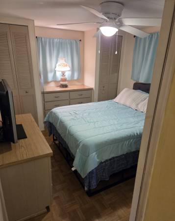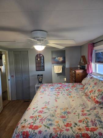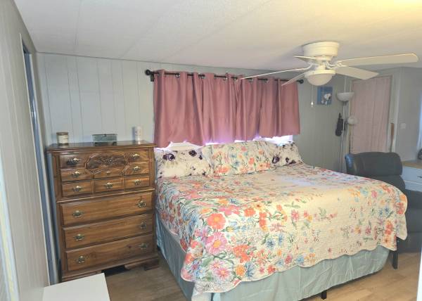 Lake Village offers a variety of amenities, including a community swimming pool, a whirlpool/spa/hot tub, a fitness center, a billiards table, a game room, and horseshoe pits. The spacious clubhouse features a banquet room for events. Additional amenities include RV storage, on-site laundry facilities, a library, and a variety of community activities, such as holiday parties and parades. There are always events happening in the community.
