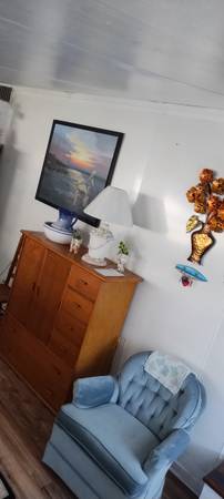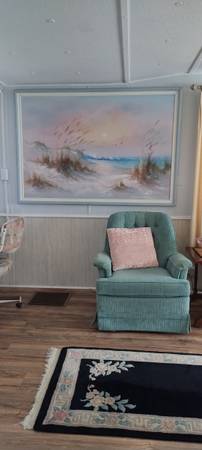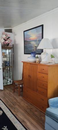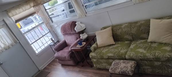 Price Drop, Gated Community, 2 bedrooms, 1 and a half baths, 950 sq ft, central heating/AC, inside laundry, 2 car carport, new roof, 3/4 plywood and laminate floors, fully furnished, park monthly rent is $210 and includes-sewer-water-lawn mowing, possible owner financing. Call Ron show contact info