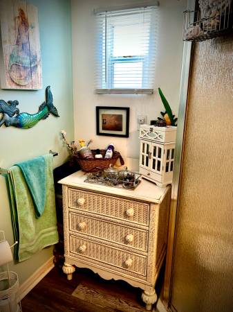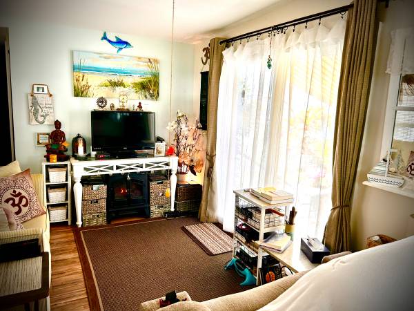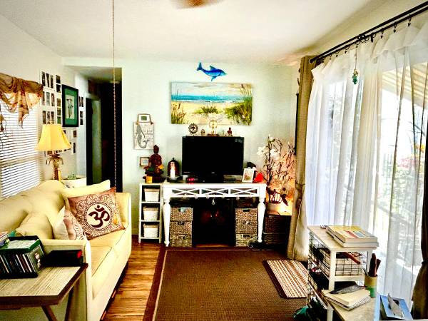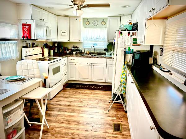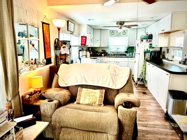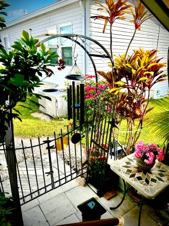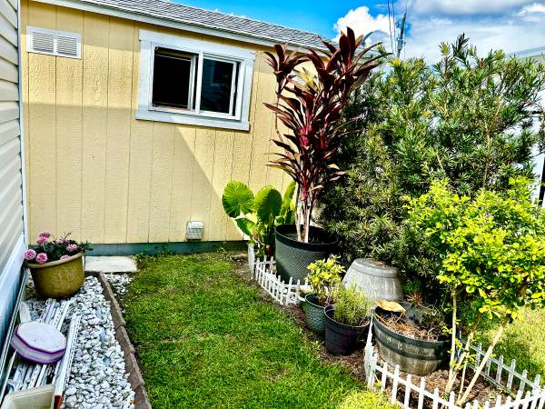 This is a VERY Roomy single wide mobile, completely updated in 2019. MANY extras including, WHOLE house Water Purification System, plus under sink RO water purifier for drinking. Also, NEW Vinyl Storm Resistant Windows throughout, Ceiling Fans in every room, Beautifully Landscaped with Private "Garden Patio" on the side with retractable Canvas Awning with easy access from large sliding glass door that adds lots of beautiful Natural Light inside this Mobile and view of the Private Garden Patio from inside! NEW 8x12 Storage "Tuff Shed" with Washer/Dryer and Fridge included. AC/Heat Pump. Vapor Barrier under mobile a real plus too! Over sized carport with sitting area also. Can be a vacation Beach House but roomy enough for full time resident. Move in ready, most furniture included. Unusually Large Kitchen with LOTS of Cabinets and Counter Tops! Queen size bed in Master with full closet and two Twin Beds in Guest Room to accommodate 2 guests. Lots of TLC given to make this lovely Beach House a real Year Round Home as well! Also Community Club House plus Lap size Pool with not only Heater for colder days but "Chiller" for the Hot Summer day swimming pleasure! That's a REAL plus, so refreshing!! Have to see this to believe how charming this mobile is! Serious inquires only please and by Appointment ONLY!