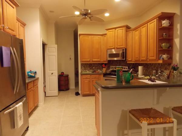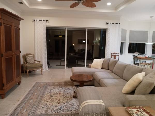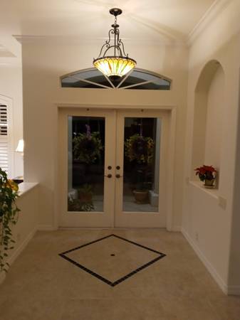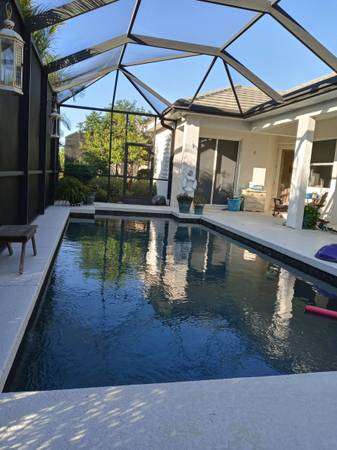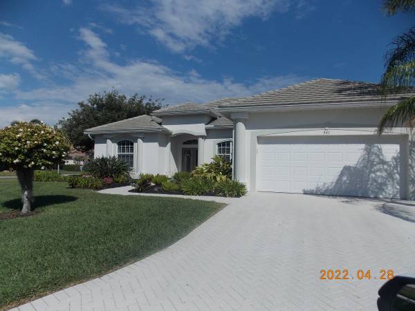 This home is in the most popular golf and country club community with 27 holes of golf and a lovely clubhouse with bar and grill and restaurant for special events. The pool has a pebble tech lining which is guaranteed for life. Wiring is in place for pool heater. Plumbing and electrical are in place for future summer kitchen. Many extras such as central vac, jacuzzi in master bath, upgraded cabinets, wiring in place for surround sound, custom tile, and more. One year home warranty is included and this covers entire electrical and plumbing systems, all appliances, garage door opener, ceiling fans, central vac and more, so no worries about anything that might malfunction. AC is approximately 5 years old. Professionally landscaped including a wonderful Meyer lemon tree which provides wonderful fruit. Extremely convenient location--access to shopping, library, restaurants, stores, the beach and banks within a few short miles. Asking $606,666. Call show contact info