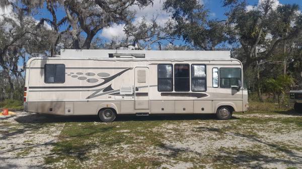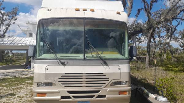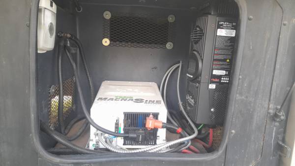 Price reduced from $40,000 of last purchase offer made. Divorce sale discount. No damage to solar or framing even during hurricanes. This low miles RV doesn't get used like it should. Someone could live in this full time and have AC running direct from 24volt twelve (x12) long life Costco AGM battery bank ($2500), or provide 50 amps of power anywhere needed. A mobile power station with full time living ability. The 10 solar panels on aluminum frame were professionally installed at a cost of over $40,000. It has less than 4000 miles of use on the Made in USA six Goodrich tires from 2020 ($3500) and 4 Sumo airbags for smooth ride ($4000). Sold as is where is, because I don't want to spend more time cleaning it. Very low miles, and priced below replacement cost of solar system. Drives excellent.