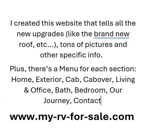 😀 Unforgettable Adventures Await YOU with this motorhome. Hit the road and live anywhere. Save money. Work out of your motorhome. Perfect for those who live in their RV full-time or just for weekend trips. A new backyard everywhere you travel. We have been everywhere! Indescribably FUN.