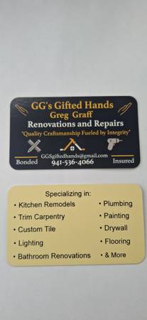 My name is Greg, a long-time local Sarasota resident for over 30 years and with over 15 years experience in the renovation/repair field.