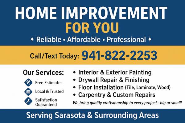 Home improvement for you offers interior exterior painting, interior doors , trim carpentry, cabinetry, laminate and wood flooring, tile and all manner of home repairs. We pride ourselves on...