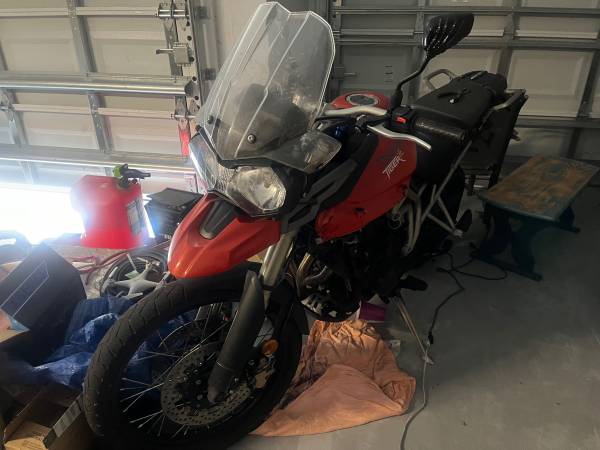 The motorcycle is practically brand new. It has like 5000 miles on it it was Owned by an 80-year-old guy that drove it from Texas to Florida back to Texas back to Florida back to Texas and back to Florida so basically only has highway miles on it. I have a brand new battery for it a brand new back tire it’s a beautiful bike