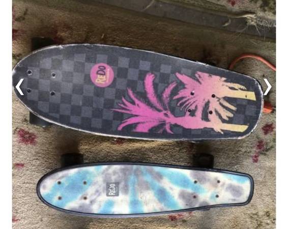 2 used skateboards. Both for 1 price.Used by 7 year old child for 3 months. Got a short slim one that you can have also.