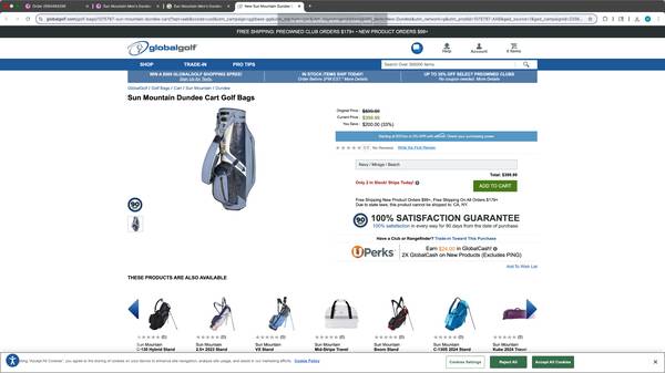 BRAND NEW A handsome, traditionally styled cart bag that reminds us of earlier generations of golfers, the Dundee is constructed with crocodile vinyl and has leather and brushed brass accents....