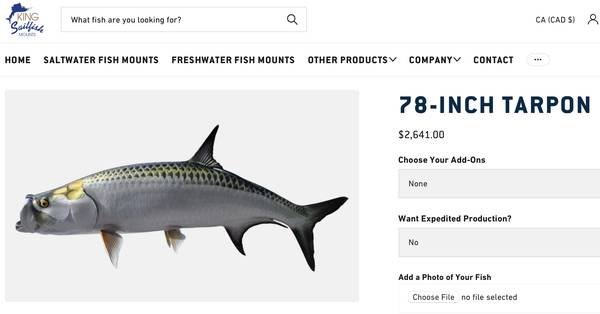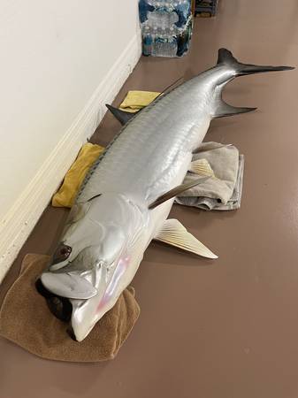 Here's a beautiful 78" tarpon mount produced by King Sailfish Mounts. We sold our house and unfortunately had no room in our new home. This fiberglass mount sells for $2640, plus tax. I hate to part with it, but have no choice, will sell for $1200.00