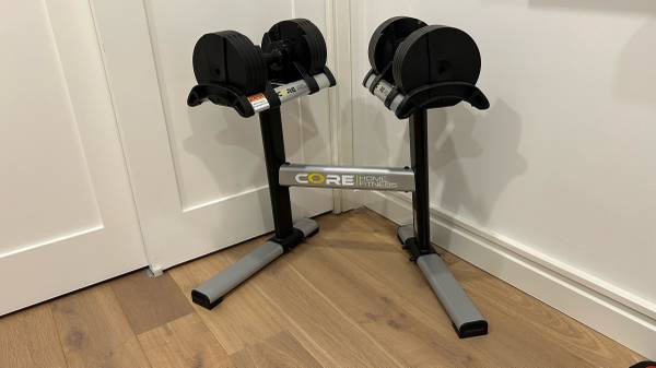 Core Home Fitness’ adjusted weight dumbbell set with stand lets you change weights in 5 lb. increments with the simple twist of a handle – no knobs to turn or levers to slide. With weights ranging...