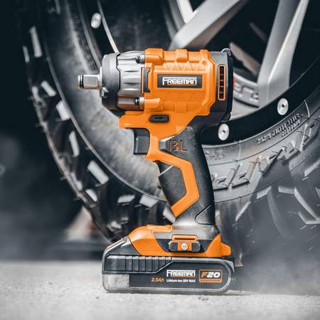 Freeman P12IW 20 Volt Cordless and Brushless 1/2" Impact Wrench Kit with 2 Ah Lithium-Ion Batteries, Charger, and Case