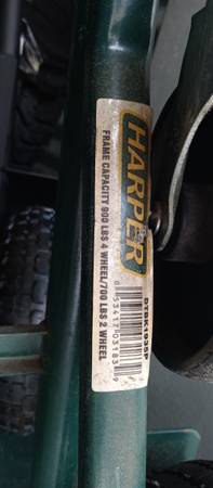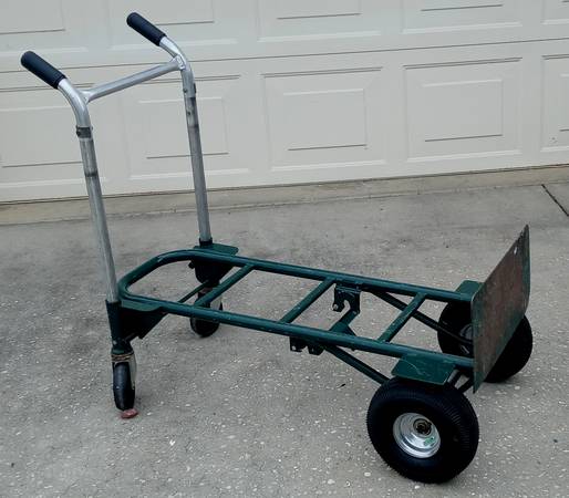 Includes a "Harper Trucks Converible Hand Truck - Excellent." It is "Heavy Duty 700 Lb. capacity 2-wheel & 900 Lb. capacity 4-wheel" and converts quickly from hand truck to 4-wheel cart!