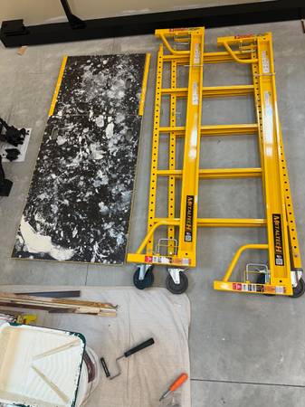 A good one owner bakers scaffolding that has been inside an air conditioned space since new. Pictures show condition. This was used for a new home build as a painter platform.