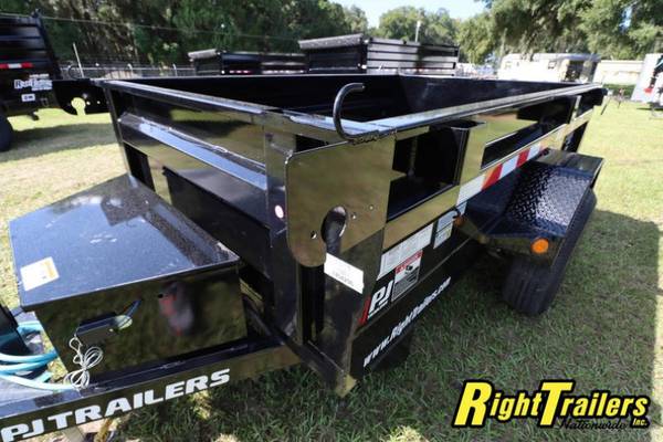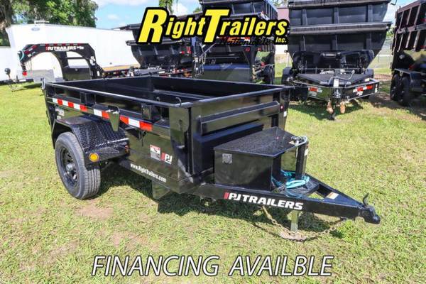 D5-8 7K DUMP - 1 EA 5200 Lb DEXTER AXLE (Elec Brake)Forward Adjusting 225/75R 15 Tires. 2" Forged Coupler, 18" Dump Sides, Barn doors, Jack Drop Leg 7k, Lighting LED 4 - D- Rings 3" Weld On, Hoist w/Standard Pump Standard Battery Wall Charger (3 Amp). NO TARP!