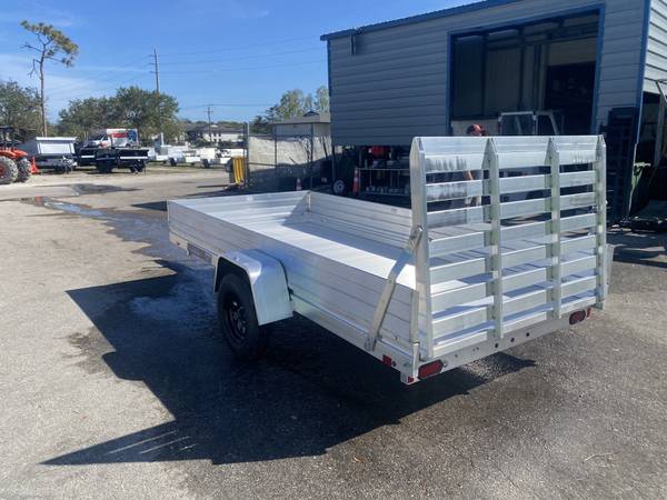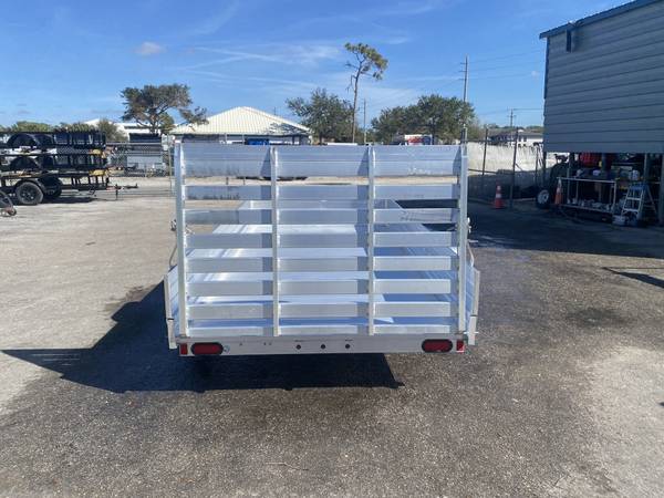 We offer RENT TO OWN and also offer Traditional Financing with approved credit !! This Trailer is for sale at Southern Trailer in Englewood Florida. New Aluma 6812H-S-TG Utility Trailer * 3500# Rubber torsion axle (rated at 2990#) - No brakes - Easy lube hubs* ST205/75R14 LRC Radial tires * Aluminum wheels * Aluminum fenders* Extruded aluminum floor* 7" Heavy-duty frame rail* A-Framed aluminum tongue, 2" coupler* 6) Stake pockets (3 per side)* 4) Tie down loops (2 per side)* Swivel tongue jack * LED Lighting package, safety chains* Aluminum tailgate = 67.25" x 44" long * Overall width = 92.5"* Overall length = 199" * * Please call or email us to verify that this trailer is still for sale * *NO DOC FEES !!! NO INBOUND FREIGHT FEES !!! NO SETUP FEES !!! All prices are Plus Tax, Title, License. All prices are already discounted for Cash, Check, Finance or RENT TO OWN. We offer financing through Sheffield Financial with approved credit on some new trailers . Southern Trailer is located in Englewood Florida. We are a licensed Florida trailer dealer. We also offer trailer parts and trailer service. Southern Trailer is not responsible for any typos, errors, or misprints. Model number may be different on MSO and Trailer than we have listed if built on robot line