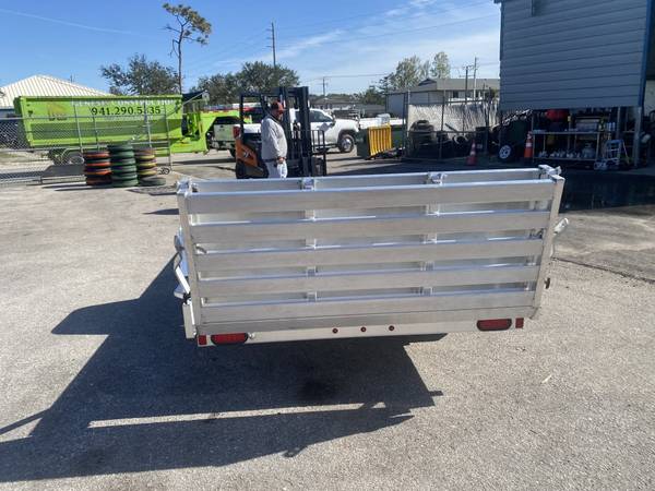 We offer RENT TO OWN and also offer Traditional Financing with approved credit !! This Trailer is for sale at Southern Trailer in Englewood Florida. New Aluma Trailers 6812H-S-BT Aluminum Utility Trailer for sale. - Model: 6812H-S-BT - 69" Wide X 12' Long - Weight: 640 LBS - Bed Size: 69" x 147" - 3500# Rubber torsion axles (rated at 2990#) - No brakes - Easy lube hubs - ST205/75R14 LRC radial tires - Aluminum wheels, - Aluminum fenders - Extruded aluminum floor - 7" Heavy-duty frame rail - A-Framed aluminum tongue 2" coupler - (6) Stake pockets (3 per side) - (4) Tie down loops (2 per side) - Swivel tongue jack, - LED Lighting package, - Safety chains - Aluminum tailgate Bi-fold - 66.5" x 60" long - Overall width 92.5" - Overall length = 200" - 5 Year Factory Warranty