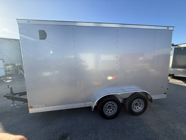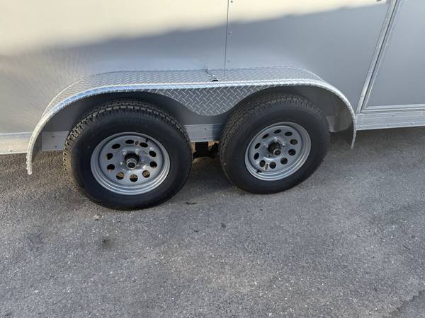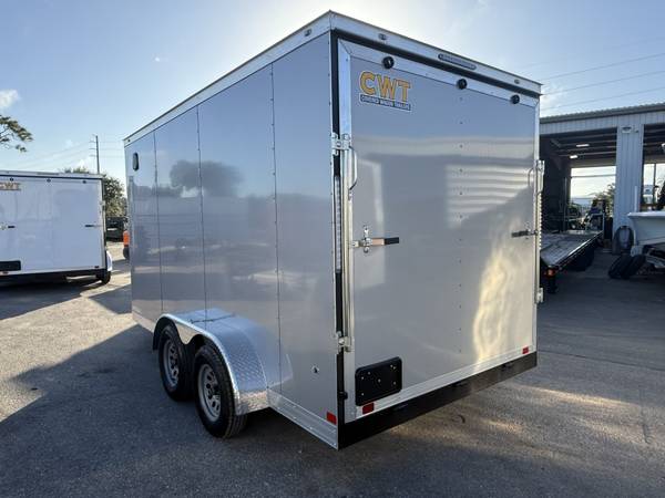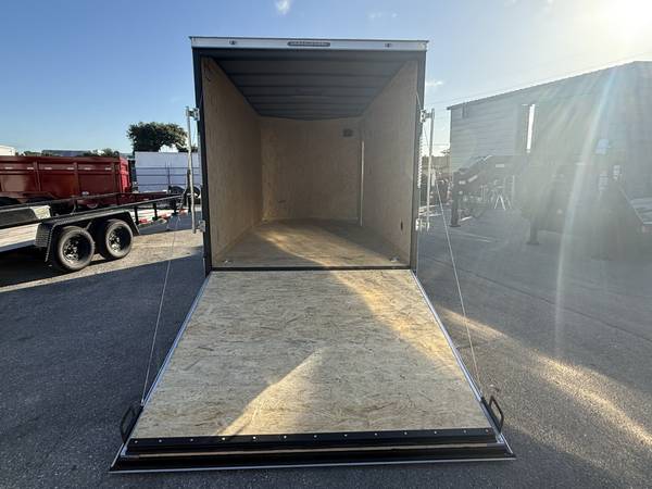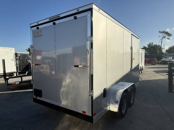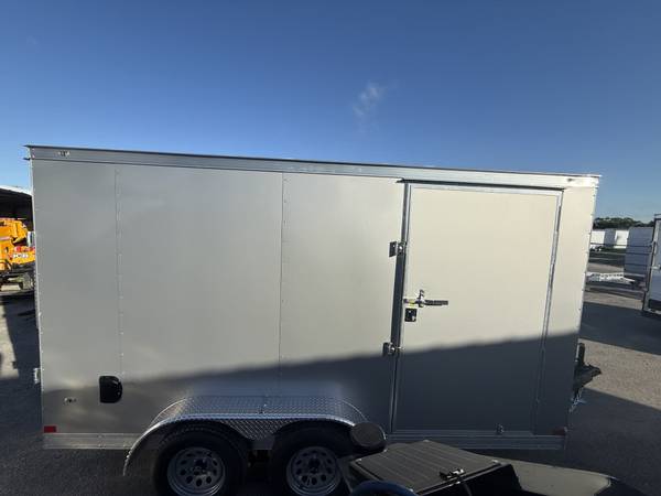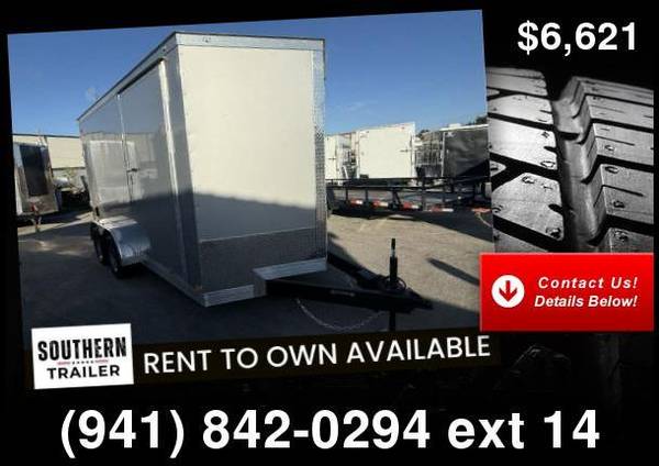 We offer RENT TO OWN and also offer Traditional Financing with approved credit !! This Trailer is for sale at Southern Trailer in Englewood Florida. Covered Wagon 7X14 Enclosed Trailer Gold Mine Series Upgrades 7' Interior Height .080 Polycore Exterior Barlock on side door 6" Metal Holdbacks Standard Features 16'' O/C Floor & Wall Cross Members 24" O/C Ceiling 2-5/16" Coupler 2K Jack & Sand Foot 48" Side Door w/Safety Chains Chrome Flush Mount Lock Semi Screwless Exterior Int. height 78" 3/4" Floors 3/8" Walls 6" Tube Main Frame 1X 1-1/2 tubing walls and roof Grey Mods rims ST205 15" radial tires 1-Pc roof 1-12V LED int light Sidewall Vent 24" ATP Stone guard & J rail 2' V-nose (2) 3500# Axles brakes on both axles 7 way plug Rear ramp door w/ transition flap Aluminum fenders LED Lighting * * Please call or email us to verify that this trailer is still for sale * *NO DOC FEES !!! NO INBOUND FREIGHT FEES !!! NO SETUP FEES !!! All prices are Plus Tax, Title, License. All prices are already discounted for Cash, Check, Finance or RENT TO OWN. We offer financing through Sheffield Financial with approved credit on some new trailers . Southern Trailer is located in Englewood Florida. We are a licensed Florida trailer dealer. We also offer trailer parts and trailer service. Southern Trailer is not responsible for any typos, errors, or misprints. Model number may be different on MSO and Trailer than we have listed if built on robot line