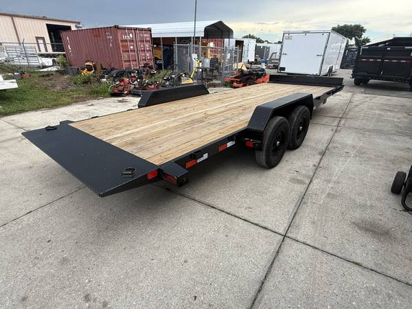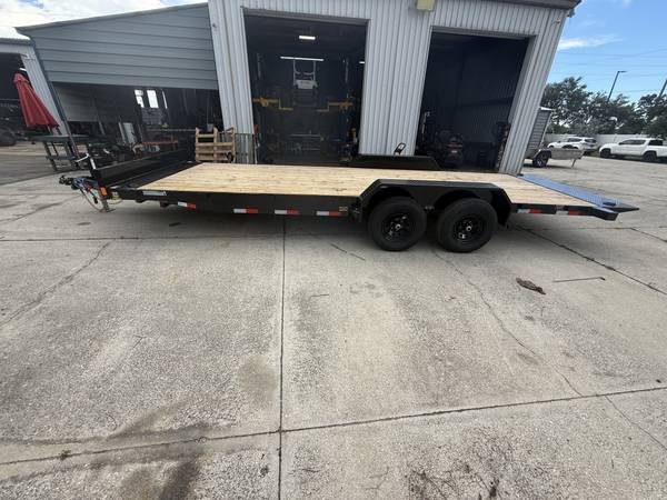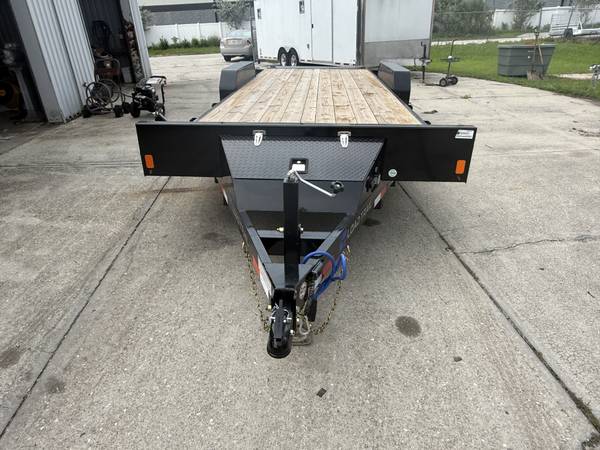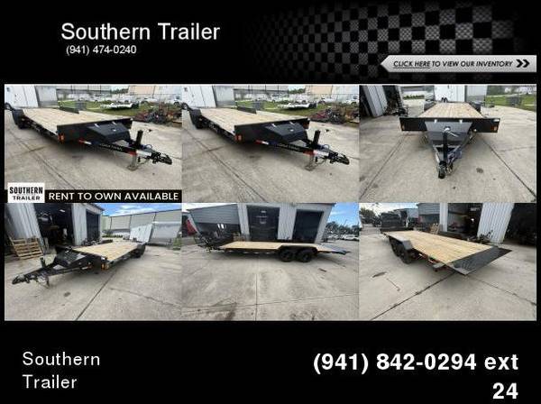 We offer RENT TO OWN and also offer Traditional Financing with approved credit !! This Trailer is for sale at Southern Trailer in Englewood Florida 83" x 22' Tandem Axle Rapid Loader Tilt Deck Trailer * ST225/75 R15 LRD 8 Ply. * 5" Channel Frame* Coupler 2-5/16" Adjustable (4 HOLE)* 2 - 5,200 Lb Dexter Spring Axles ( Elec FSA Brakes on both axles )* Diamond Plate Fenders (removable)* 16" Cross-Members* Jack Drop Leg 7000 lb.* Power Up Full Deck (Treated Pine)(w/TUFF Wireless Remote)* Lights LED (w/Cold Weather Harness)* 4 - D-Rings 4" Weld On* Road Service Program * Sport Box* Spare Tire Mount* 1/4" Plate for Winch* Black (w/Primer)TM8322052 * * Please call or email us to verify that this trailer is still for sale * *NO DOC FEES !!! NO INBOUND FREIGHT FEES !!! NO SETUP FEES !!! All prices are Plus Tax, Title, License. All prices are already discounted for Cash, Check, Finance or RENT TO OWN. We offer financing through Sheffield Financial with approved credit on some new trailers . Southern Trailer is located in Englewood Florida. We are a licensed Florida trailer dealer. We also offer trailer parts and trailer service. Southern Trailer is not responsible for any typos, errors, or misprints. Model number may be different on MSO and Trailer than we have listed if built on robot line