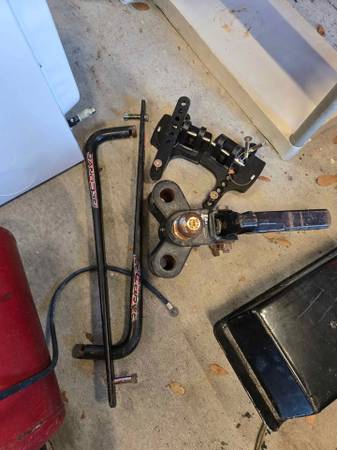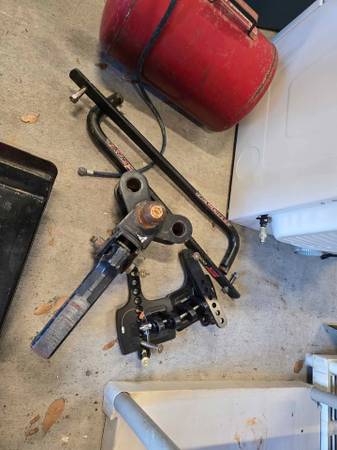 Camco 1200lb recurve trailer hitch set up. This gets the weight off of your trucks rear end to prevent bottoming out. Also acts as a sway bar for more stable towing. New this u it is over $500