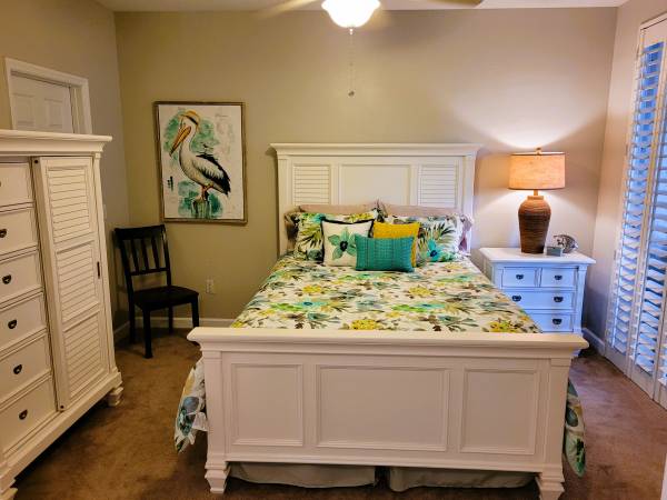 Condo is fully equipped with top shelf include; air conditioning, ceiling fans, central heat, family room, dining room, dishwasher, refrigerator, stove/oven, microwave, granite countertops, spectacular lanai views, master bedroom with walk-in-closet + luxurious bath, lanai, cable tv, high-speed internet plus secure wireless.