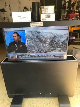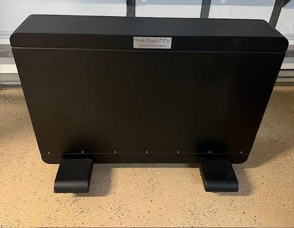 Weatherproof Outdoor TV Lift. Whisper - quiet RF- remote controlled operation - at the push of a button your TV is magically raised out of its enclosure, and smoothly elevates to full screen viewing. Fits up to 46 inch TV. The TV lift can roll in any direction with ease. TV not Included