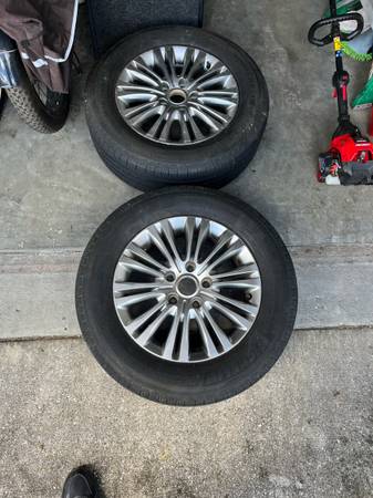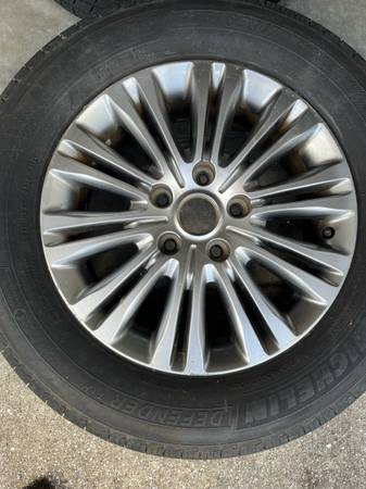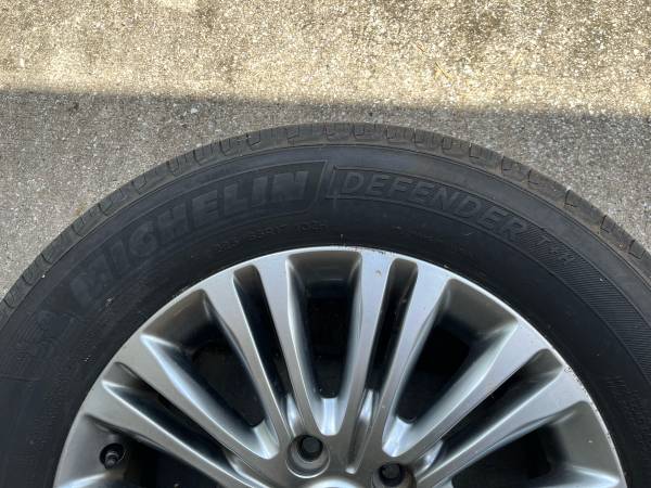1 pair of 17” Chrysler Town and Country wheels with Michelin Defender tires size 225/65R17 103H Lots of tread left on these In good condition ready to mount on your van. These are off a 2013 but fit...
