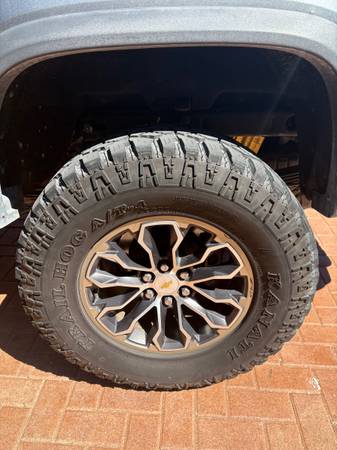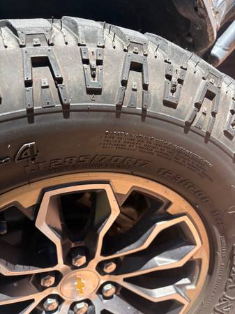 For sale are 4 wheels and tires from my Chevy ZR2 Colorado. Tires are 33” and wheels are in great shape. I’m selling as package set. Price is the same whether you just want wheels or tires. (Will not uninstall tires)